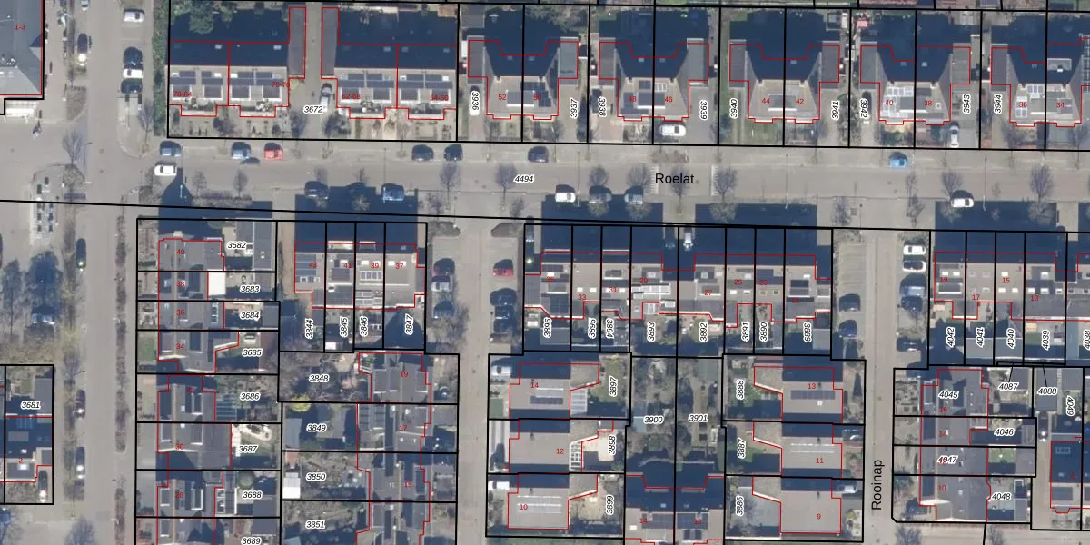 Het perceel waarop Roelat 35 staat heeft een oppervlakte van 204 m². Dit is een middelgroot perceel. De perceeloppervlakte wordt geregistreerd door het Kadaster. Gedetailleerde informatie over de maten van dit perceel kunt u vinden in het rapport Kadastrale kaart met maatvoering van Roelat 35.