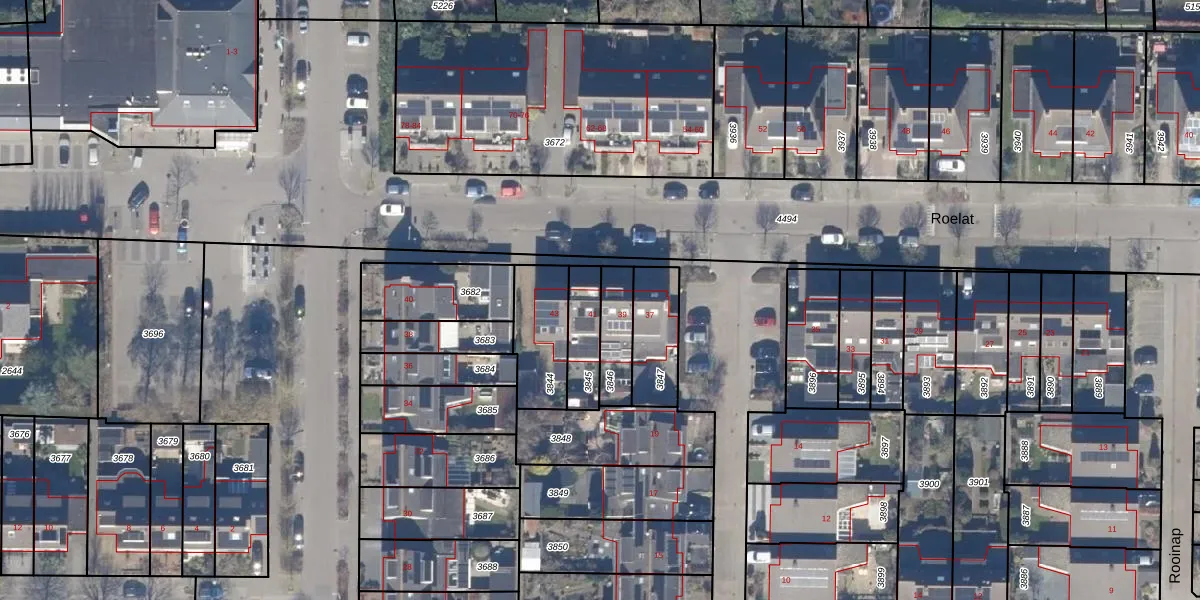 Het perceel waarop Roelat 41 staat heeft een oppervlakte van 130 m². Dit is een middelgroot perceel. De perceeloppervlakte wordt geregistreerd door het Kadaster. Gedetailleerde informatie over de maten van dit perceel kunt u vinden in het rapport Kadastrale kaart met maatvoering van Roelat 41.