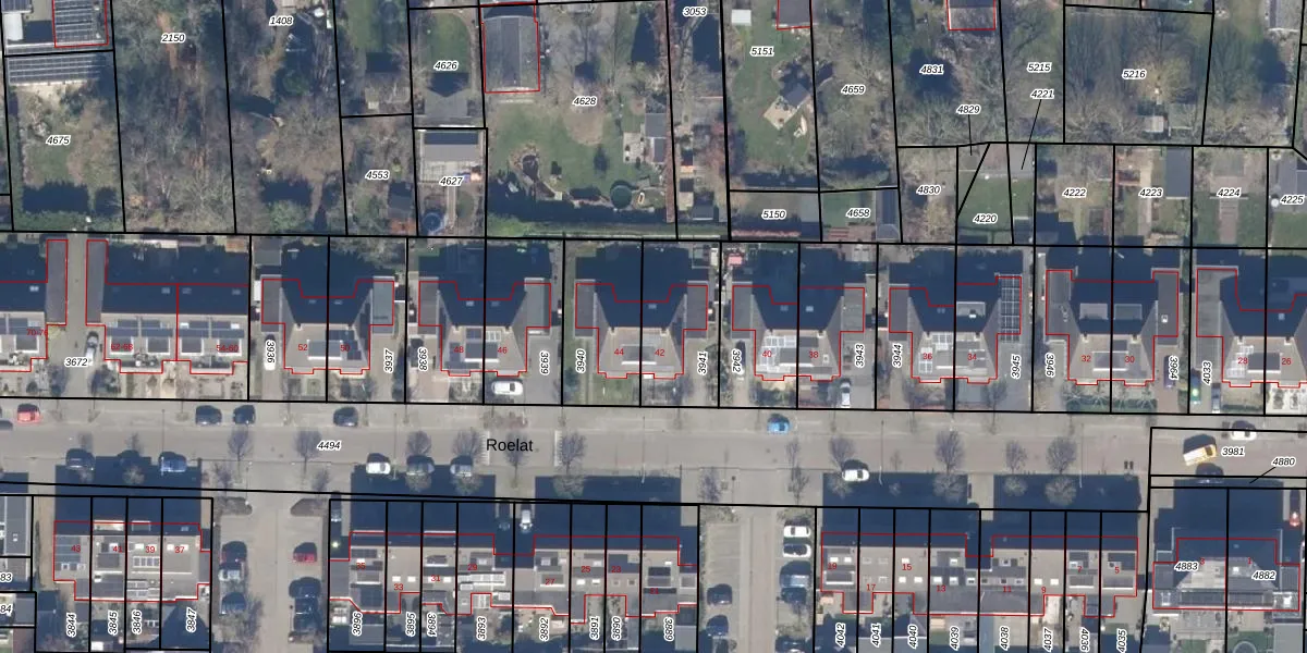 Het perceel waarop Roelat 42 staat heeft een oppervlakte van 305 m². Dit is een groot perceel. De perceeloppervlakte wordt geregistreerd door het Kadaster. Gedetailleerde informatie over de maten van dit perceel kunt u vinden in het rapport Kadastrale kaart met maatvoering van Roelat 42.