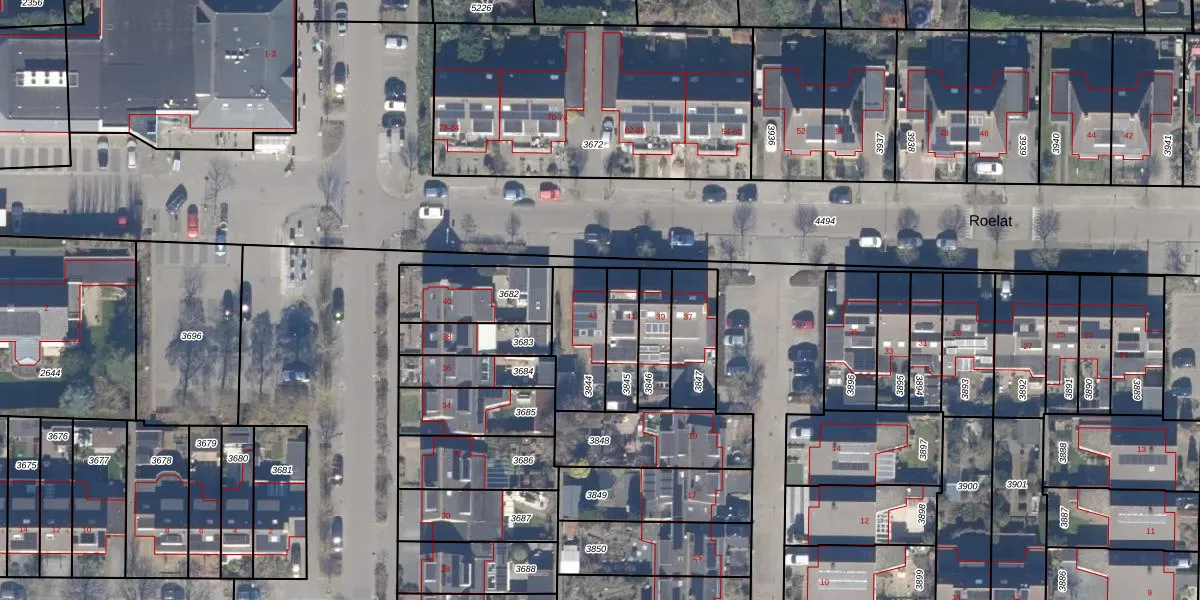 Het perceel waarop Roelat 43 staat heeft een oppervlakte van 211 m². Dit is een middelgroot perceel. De perceeloppervlakte wordt geregistreerd door het Kadaster. Gedetailleerde informatie over de maten van dit perceel kunt u vinden in het rapport Kadastrale kaart met maatvoering van Roelat 43.