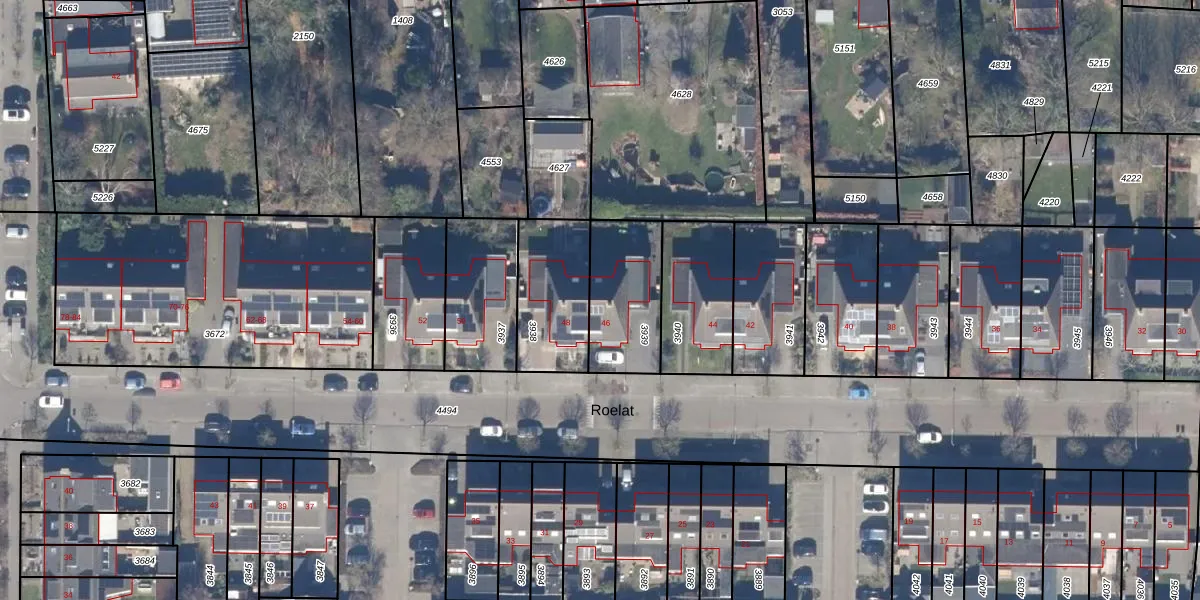 Het perceel waarop Roelat 46 staat heeft een oppervlakte van 305 m². Dit is een groot perceel. De perceeloppervlakte wordt geregistreerd door het Kadaster. Gedetailleerde informatie over de maten van dit perceel kunt u vinden in het rapport Kadastrale kaart met maatvoering van Roelat 46.