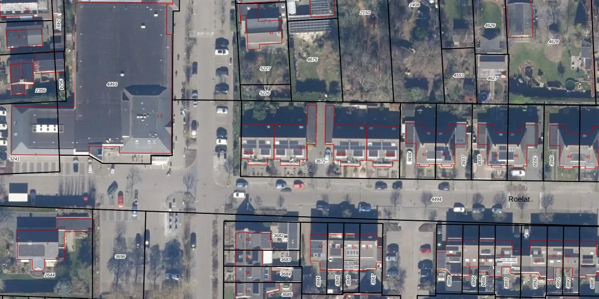 Het perceel waarop Roelat 72 staat heeft een oppervlakte van 1350 m². Dit is een zeer groot perceel. De perceeloppervlakte wordt geregistreerd door het Kadaster. Gedetailleerde informatie over de maten van dit perceel kunt u vinden in het rapport Kadastrale kaart met maatvoering van Roelat 72.