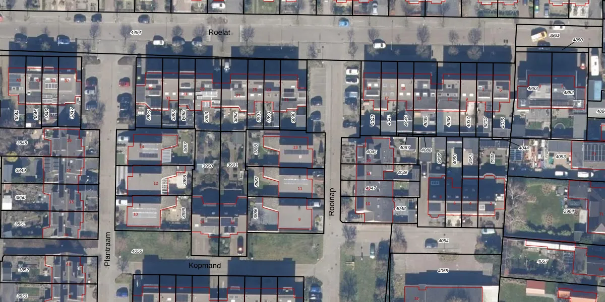 Het perceel waarop Rooinap 13 staat heeft een oppervlakte van 319 m². Dit is een groot perceel. De perceeloppervlakte wordt geregistreerd door het Kadaster. Gedetailleerde informatie over de maten van dit perceel kunt u vinden in het rapport Kadastrale kaart met maatvoering van Rooinap 13.