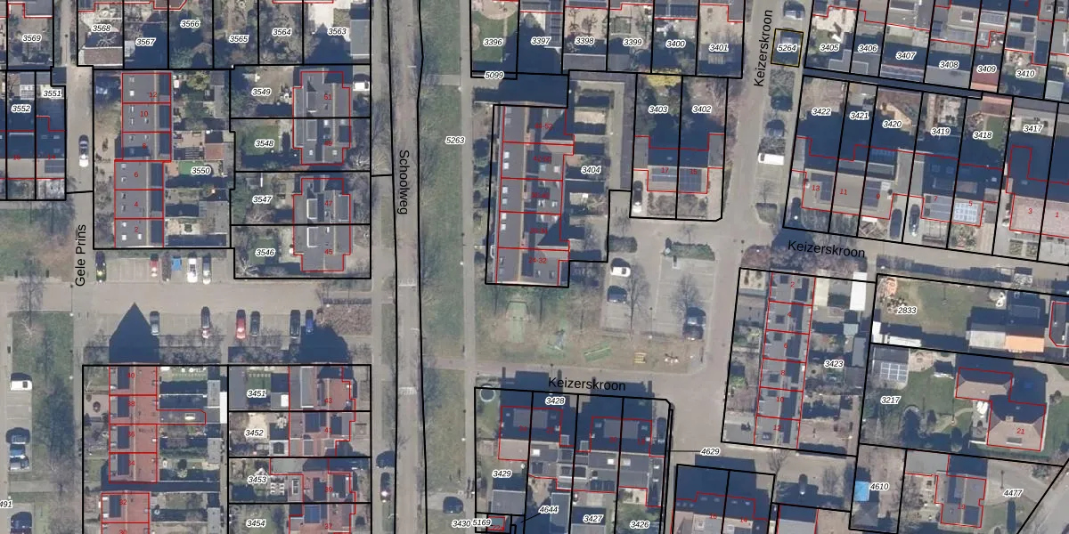 Het perceel waarop Schoolweg 28 staat heeft een oppervlakte van 869 m². Dit is een groot perceel. De perceeloppervlakte wordt geregistreerd door het Kadaster. Gedetailleerde informatie over de maten van dit perceel kunt u vinden in het rapport Kadastrale kaart met maatvoering van Schoolweg 28.
