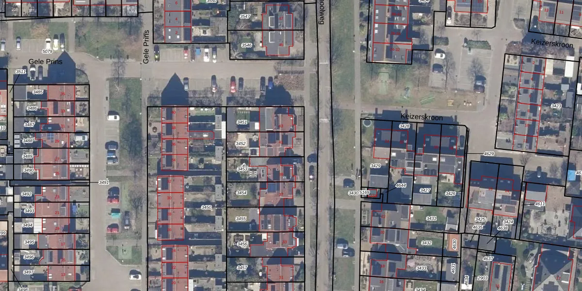 Gebruik de zoekbalk of klik op een perceel voor informatie over de adressen binnen dit perceel.