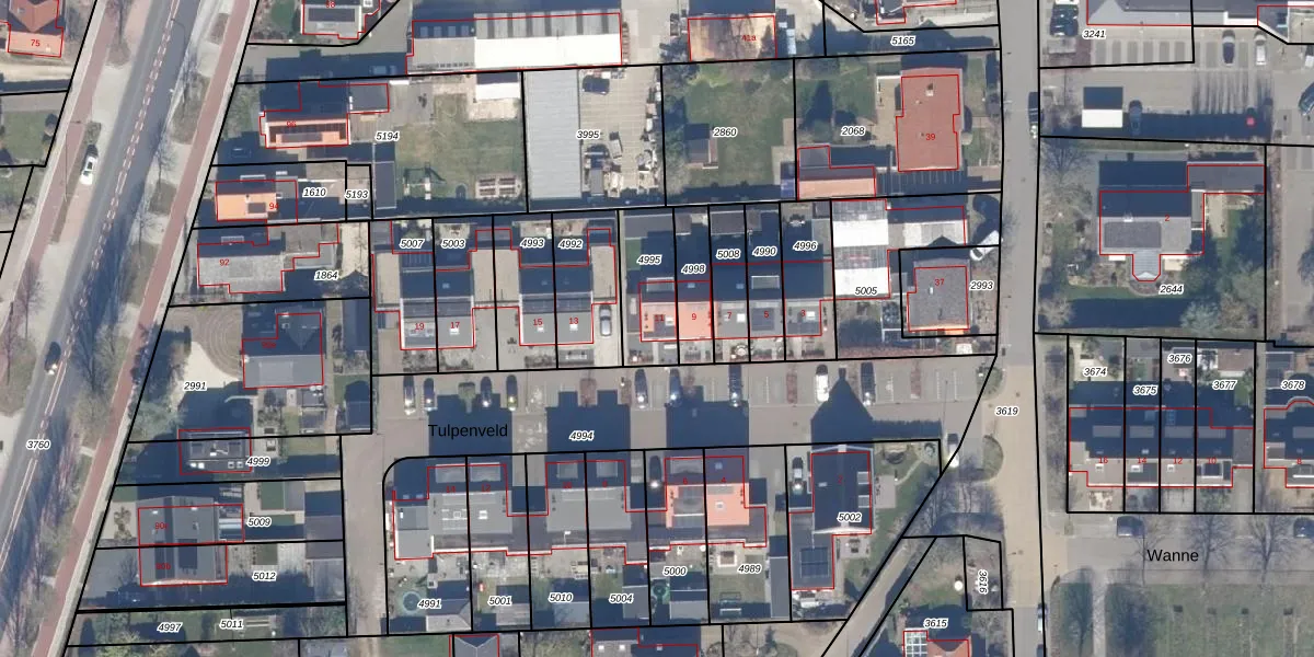 Gebruik de zoekbalk of klik op een perceel voor informatie over de adressen binnen dit perceel.