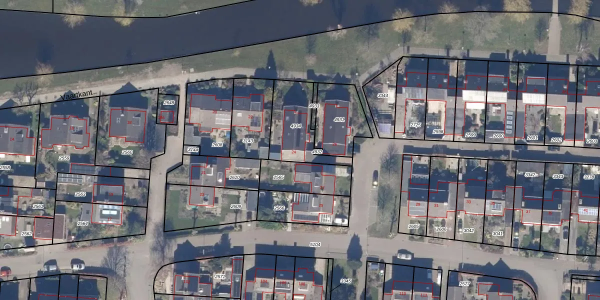 Het perceel waarop Vaartkant 24 staat heeft een oppervlakte van 417 m². Dit is een groot perceel. De perceeloppervlakte wordt geregistreerd door het Kadaster. Gedetailleerde informatie over de maten van dit perceel kunt u vinden in het rapport Kadastrale kaart met maatvoering van Vaartkant 24.