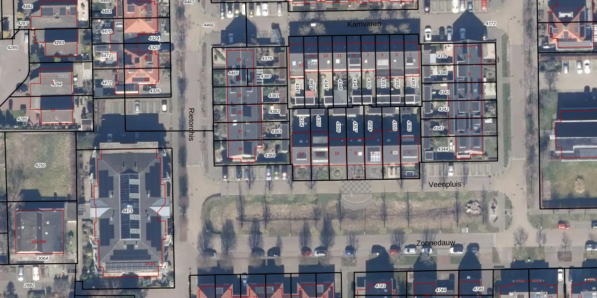 Het perceel waarop Veenpluis 14 staat heeft een oppervlakte van 165 m². Dit is een middelgroot perceel. De perceeloppervlakte wordt geregistreerd door het Kadaster. Gedetailleerde informatie over de maten van dit perceel kunt u vinden in het rapport Kadastrale kaart met maatvoering van Veenpluis 14.
