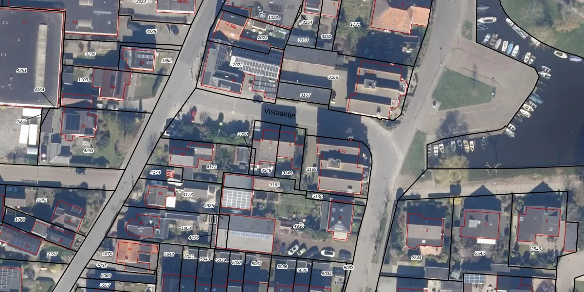 Het perceel waarop Vislaantje 4 staat heeft een oppervlakte van 163 m². Dit is een middelgroot perceel. De perceeloppervlakte wordt geregistreerd door het Kadaster. Gedetailleerde informatie over de maten van dit perceel kunt u vinden in het rapport Kadastrale kaart met maatvoering van Vislaantje 4.