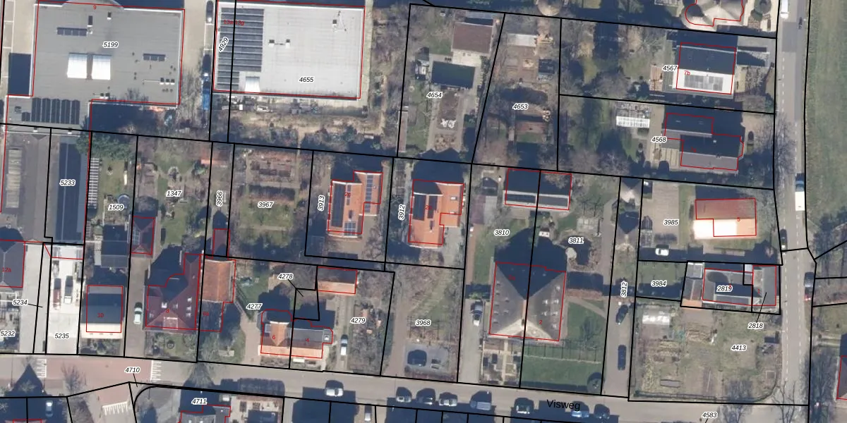 Het perceel waarop Visweg 2-b staat heeft een oppervlakte van 467 m². Dit is een groot perceel. De perceeloppervlakte wordt geregistreerd door het Kadaster. Gedetailleerde informatie over de maten van dit perceel kunt u vinden in het rapport Kadastrale kaart met maatvoering van Visweg 2-b.