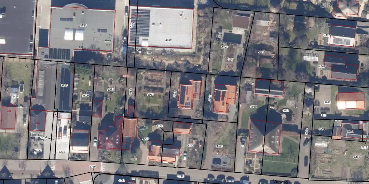 Het perceel waarop Visweg 2-c staat heeft een oppervlakte van 475 m². Dit is een groot perceel. De perceeloppervlakte wordt geregistreerd door het Kadaster. Gedetailleerde informatie over de maten van dit perceel kunt u vinden in het rapport Kadastrale kaart met maatvoering van Visweg 2-c.