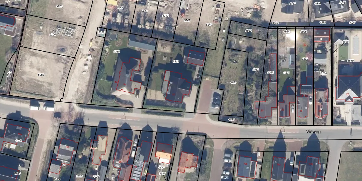 Het perceel waarop Visweg 32 staat heeft een oppervlakte van 1075 m². Dit is een zeer groot perceel. De perceeloppervlakte wordt geregistreerd door het Kadaster. Gedetailleerde informatie over de maten van dit perceel kunt u vinden in het rapport Kadastrale kaart met maatvoering van Visweg 32.