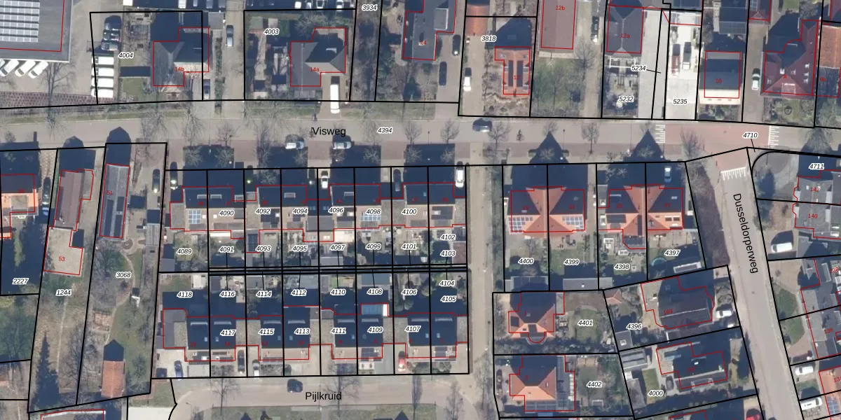 Gebruik de zoekbalk of klik op een perceel voor informatie over de adressen binnen dit perceel.