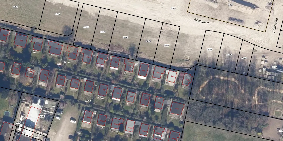 Het perceel waarop Visweg 44-d staat heeft een oppervlakte van 1,2 ha. Dit is een zeer groot perceel. De perceeloppervlakte wordt geregistreerd door het Kadaster. Gedetailleerde informatie over de maten van dit perceel kunt u vinden in het rapport Kadastrale kaart met maatvoering van Visweg 44-d.
