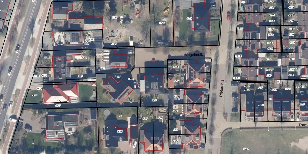 Het perceel waarop Vogelmelk 1 staat heeft een oppervlakte van 455 m². Dit is een groot perceel. De perceeloppervlakte wordt geregistreerd door het Kadaster. Gedetailleerde informatie over de maten van dit perceel kunt u vinden in het rapport Kadastrale kaart met maatvoering van Vogelmelk 1.