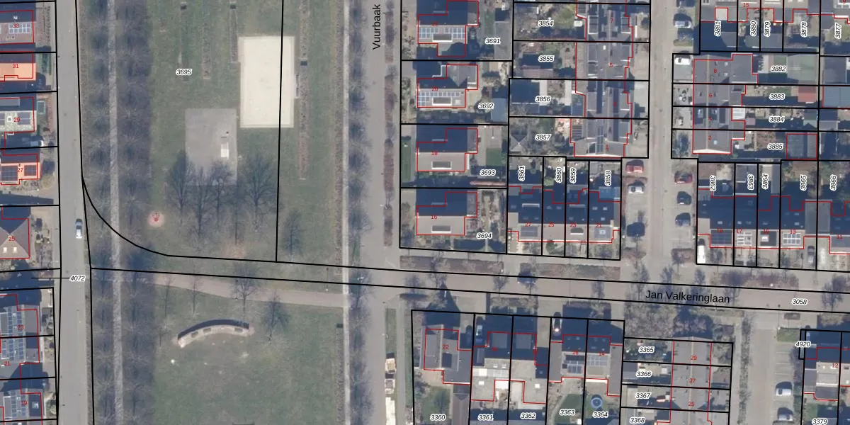 Het perceel waarop Vuurbaak 16 staat heeft een oppervlakte van 372 m². Dit is een groot perceel. De perceeloppervlakte wordt geregistreerd door het Kadaster. Gedetailleerde informatie over de maten van dit perceel kunt u vinden in het rapport Kadastrale kaart met maatvoering van Vuurbaak 16.
