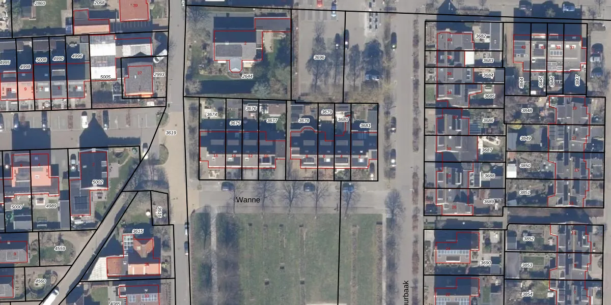 Het perceel waarop Wanne 8 staat heeft een oppervlakte van 268 m². Dit is een middelgroot perceel. De perceeloppervlakte wordt geregistreerd door het Kadaster. Gedetailleerde informatie over de maten van dit perceel kunt u vinden in het rapport Kadastrale kaart met maatvoering van Wanne 8.