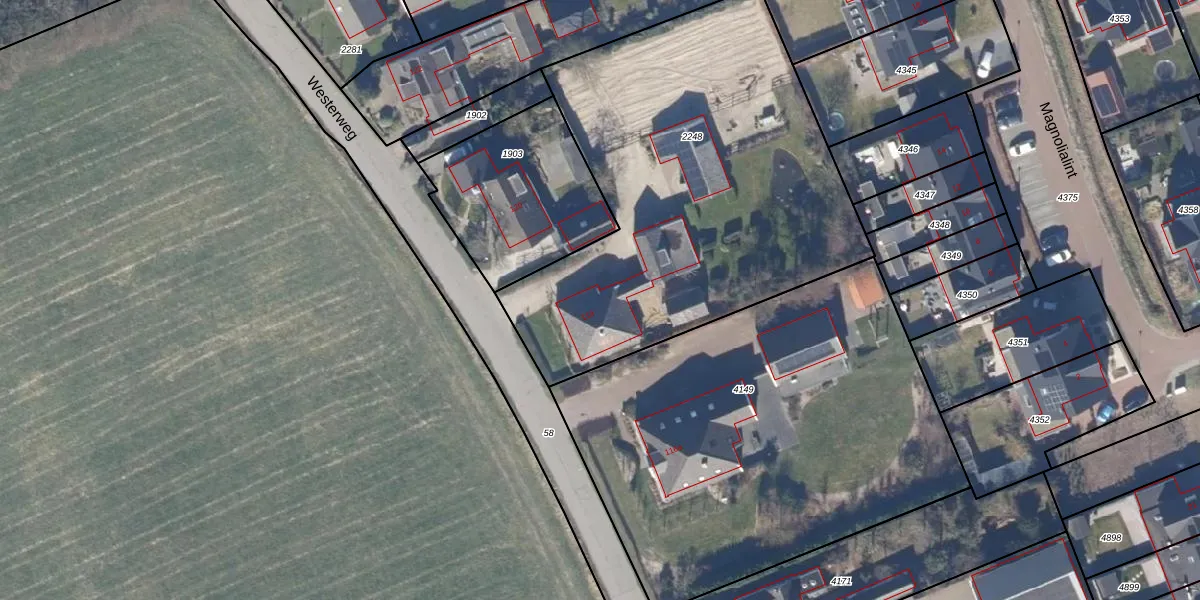 Het perceel waarop Westerweg 118 staat heeft een oppervlakte van 2293 m². Dit is een zeer groot perceel. De perceeloppervlakte wordt geregistreerd door het Kadaster. Gedetailleerde informatie over de maten van dit perceel kunt u vinden in het rapport Kadastrale kaart met maatvoering van Westerweg 118.