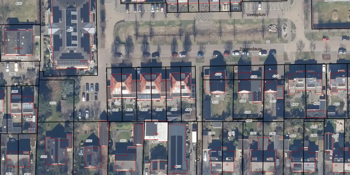 Het perceel waarop Zonnedauw 19 staat heeft een oppervlakte van 265 m². Dit is een middelgroot perceel. De perceeloppervlakte wordt geregistreerd door het Kadaster. Gedetailleerde informatie over de maten van dit perceel kunt u vinden in het rapport Kadastrale kaart met maatvoering van Zonnedauw 19.