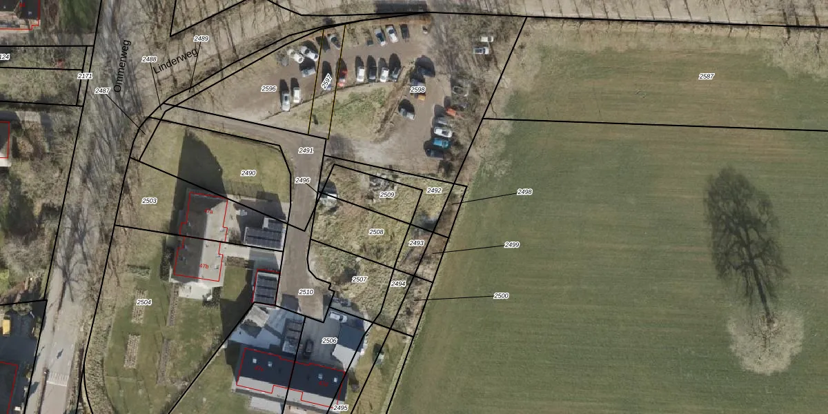 Ommerweg 47-g is gelegen op kadastraal perceel ZWD02Q2509. Deze kadastrale aanduiding is uniek en wordt gebruikt door het Kadaster om eigendomsrechten en andere zakelijke rechten vast te leggen. Het perceel maakt onderdeel uit van de kadastrale gemeente Zuidwolde.