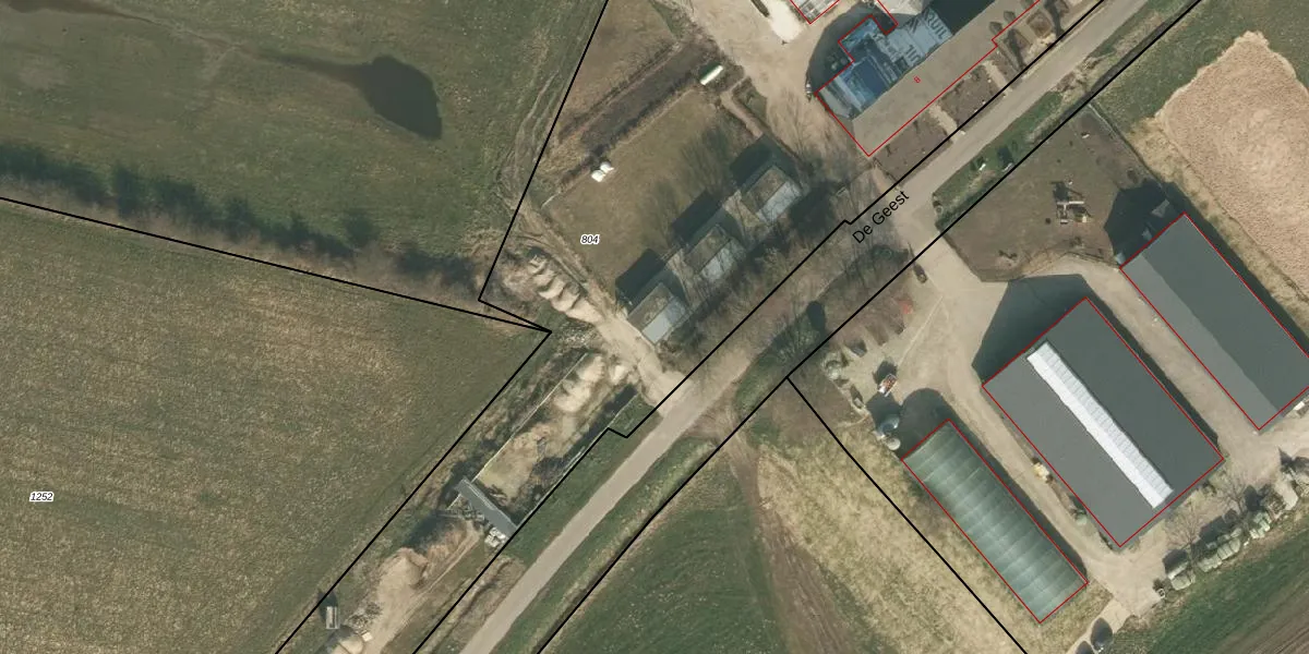 Het perceel waarop De Geest 8-e staat heeft een oppervlakte van 1,0 ha. Dit is een zeer groot perceel. De perceeloppervlakte wordt geregistreerd door het Kadaster. Gedetailleerde informatie over de maten van dit perceel kunt u vinden in het rapport Kadastrale kaart met maatvoering van De Geest 8-e.