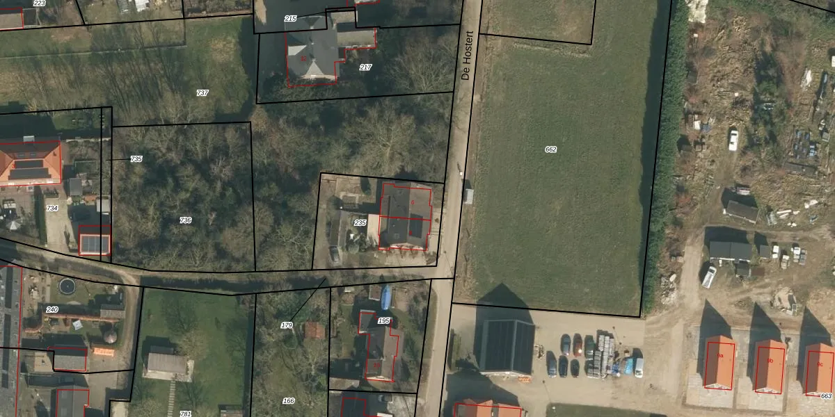 Het perceel waarop De Hostert 6 staat heeft een oppervlakte van 642 m². Dit is een groot perceel. De perceeloppervlakte wordt geregistreerd door het Kadaster. Gedetailleerde informatie over de maten van dit perceel kunt u vinden in het rapport Kadastrale kaart met maatvoering van De Hostert 6.