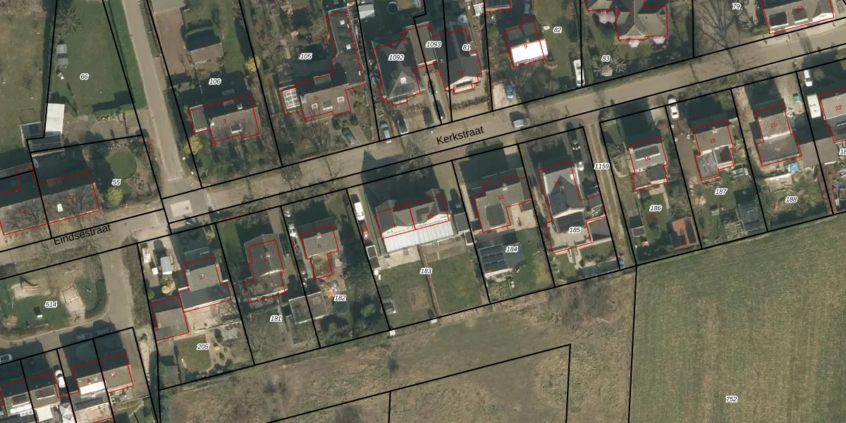 Het perceel waarop Kerkstraat 10 staat heeft een oppervlakte van 905 m². Dit is een groot perceel. De perceeloppervlakte wordt geregistreerd door het Kadaster. Gedetailleerde informatie over de maten van dit perceel kunt u vinden in het rapport Kadastrale kaart met maatvoering van Kerkstraat 10.