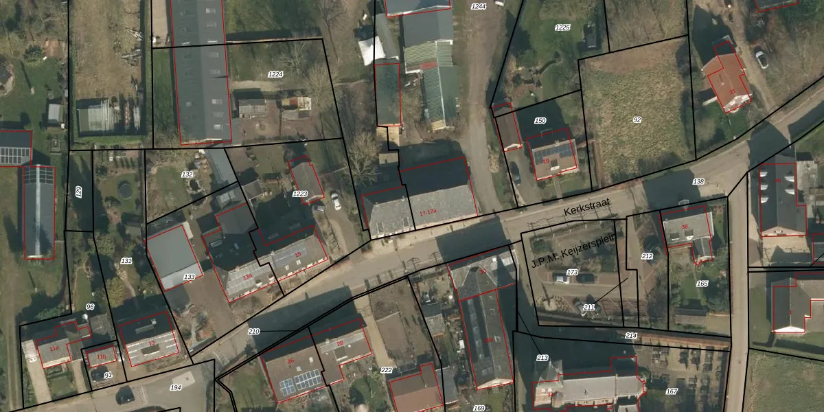 Kerkstraat 17 is gelegen op kadastraal perceel CUI00M1244. Deze kadastrale aanduiding is uniek en wordt gebruikt door het Kadaster om eigendomsrechten en andere zakelijke rechten vast te leggen. Het perceel maakt onderdeel uit van de kadastrale gemeente Cuijk.