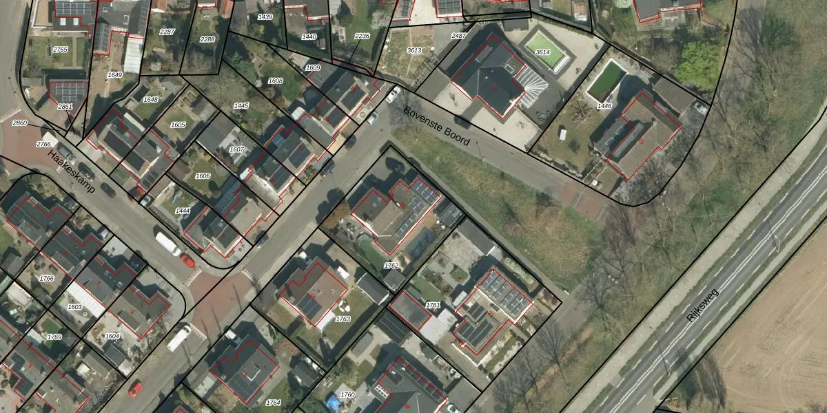 Het perceel waarop Bovenste Boord 20 staat heeft een oppervlakte van 659 m². Dit is een groot perceel. De perceeloppervlakte wordt geregistreerd door het Kadaster. Gedetailleerde informatie over de maten van dit perceel kunt u vinden in het rapport Kadastrale kaart met maatvoering van Bovenste Boord 20.