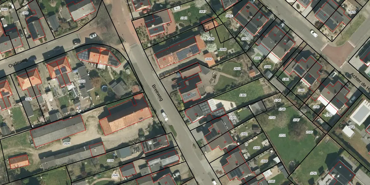 Het perceel waarop Breeweg 24 staat heeft een oppervlakte van 877 m². Dit is een groot perceel. De perceeloppervlakte wordt geregistreerd door het Kadaster. Gedetailleerde informatie over de maten van dit perceel kunt u vinden in het rapport Kadastrale kaart met maatvoering van Breeweg 24.