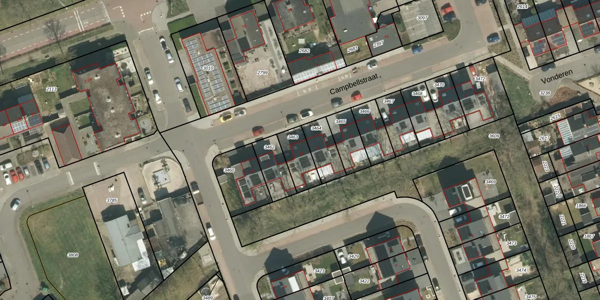 Campbellstraat 15 is gelegen op kadastraal perceel LNE00E3463. Deze kadastrale aanduiding is uniek en wordt gebruikt door het Kadaster om eigendomsrechten en andere zakelijke rechten vast te leggen. Het perceel maakt onderdeel uit van de kadastrale gemeente Linne.
