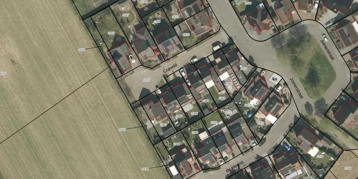 Het perceel waarop Craveld 9 staat heeft een oppervlakte van 262 m². Dit is een middelgroot perceel. De perceeloppervlakte wordt geregistreerd door het Kadaster. Gedetailleerde informatie over de maten van dit perceel kunt u vinden in het rapport Kadastrale kaart met maatvoering van Craveld 9.