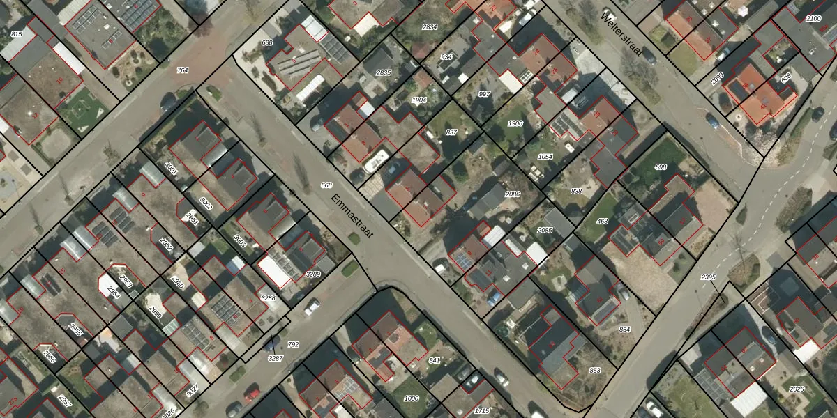 Het perceel waarop Emmastraat 7 staat heeft een oppervlakte van 695 m². Dit is een groot perceel. De perceeloppervlakte wordt geregistreerd door het Kadaster. Gedetailleerde informatie over de maten van dit perceel kunt u vinden in het rapport Kadastrale kaart met maatvoering van Emmastraat 7.