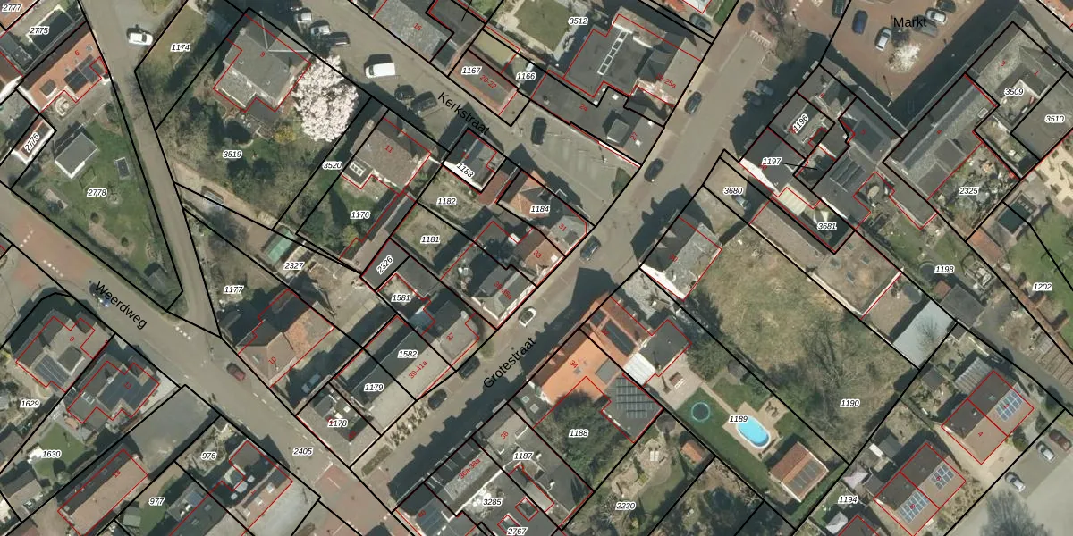 Grotestraat 33 is gelegen op kadastraal perceel LNE00E1182. Deze kadastrale aanduiding is uniek en wordt gebruikt door het Kadaster om eigendomsrechten en andere zakelijke rechten vast te leggen. Het perceel maakt onderdeel uit van de kadastrale gemeente Linne.