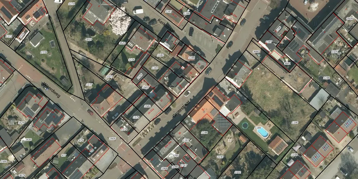 Grotestraat 35 is gelegen op kadastraal perceel LNE00E1181. Deze kadastrale aanduiding is uniek en wordt gebruikt door het Kadaster om eigendomsrechten en andere zakelijke rechten vast te leggen. Het perceel maakt onderdeel uit van de kadastrale gemeente Linne.