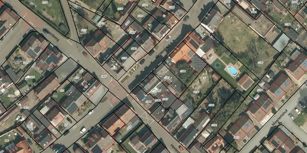 Grotestraat 36-a is gelegen op kadastraal perceel LNE00E3285. Deze kadastrale aanduiding is uniek en wordt gebruikt door het Kadaster om eigendomsrechten en andere zakelijke rechten vast te leggen. Het perceel maakt onderdeel uit van de kadastrale gemeente Linne.