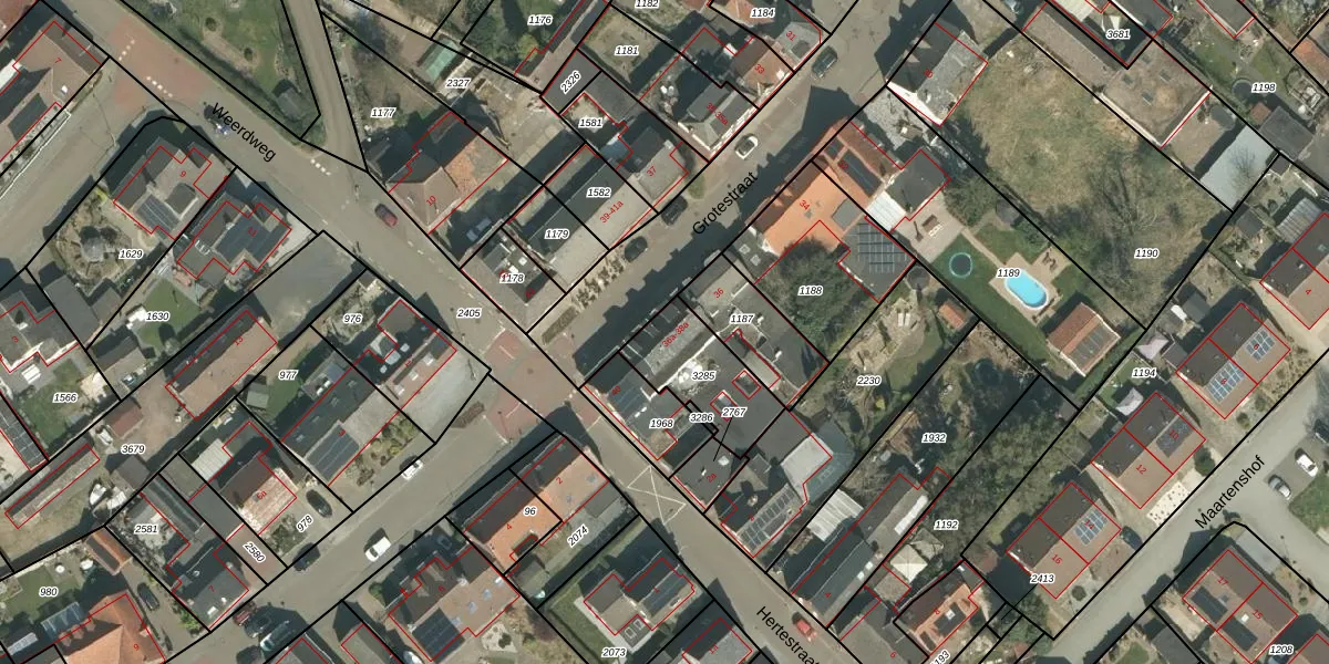 Grotestraat 38 is gelegen op kadastraal perceel LNE00E3285. Deze kadastrale aanduiding is uniek en wordt gebruikt door het Kadaster om eigendomsrechten en andere zakelijke rechten vast te leggen. Het perceel maakt onderdeel uit van de kadastrale gemeente Linne.