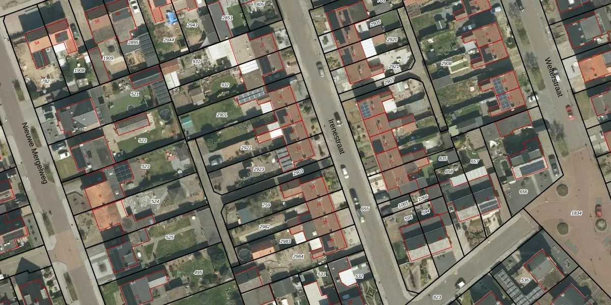 Het perceel waarop Irenestraat 12 staat heeft een oppervlakte van 330 m². Dit is een groot perceel. De perceeloppervlakte wordt geregistreerd door het Kadaster. Gedetailleerde informatie over de maten van dit perceel kunt u vinden in het rapport Kadastrale kaart met maatvoering van Irenestraat 12.