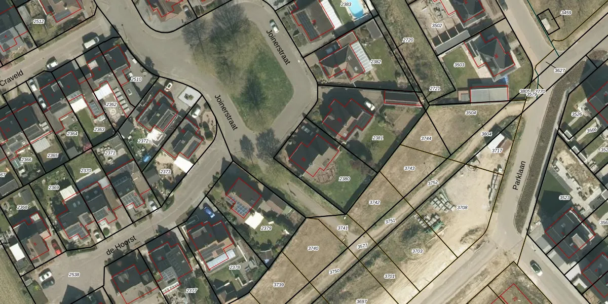 Joinerstraat 35 is gelegen op kadastraal perceel LNE00E2380. Deze kadastrale aanduiding is uniek en wordt gebruikt door het Kadaster om eigendomsrechten en andere zakelijke rechten vast te leggen. Het perceel maakt onderdeel uit van de kadastrale gemeente Linne.