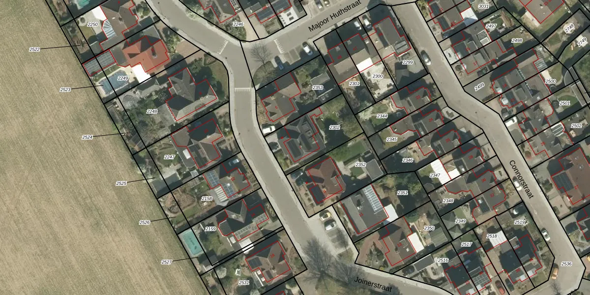 Het perceel waarop Joinerstraat 7 staat heeft een oppervlakte van 458 m². Dit is een groot perceel. De perceeloppervlakte wordt geregistreerd door het Kadaster. Gedetailleerde informatie over de maten van dit perceel kunt u vinden in het rapport Kadastrale kaart met maatvoering van Joinerstraat 7.