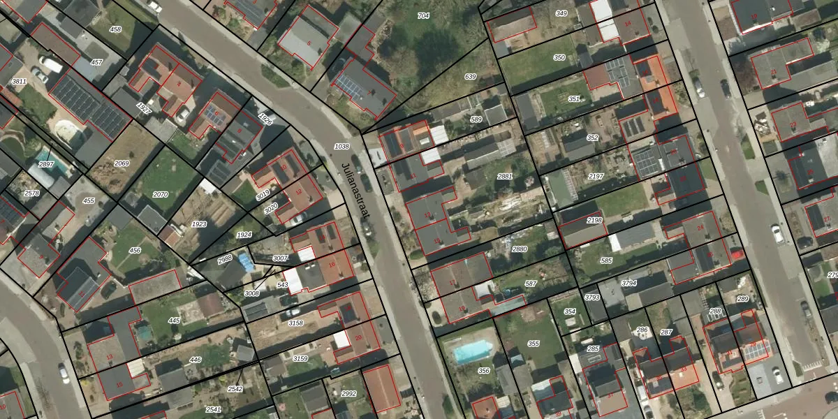 Julianastraat 13 is gelegen op kadastraal perceel LNE00E2881. Deze kadastrale aanduiding is uniek en wordt gebruikt door het Kadaster om eigendomsrechten en andere zakelijke rechten vast te leggen. Het perceel maakt onderdeel uit van de kadastrale gemeente Linne.