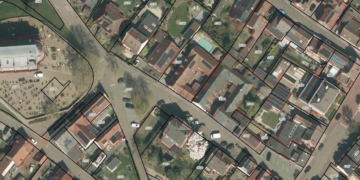 Kerkstraat 14 is gelegen op kadastraal perceel LNE00E1156. Deze kadastrale aanduiding is uniek en wordt gebruikt door het Kadaster om eigendomsrechten en andere zakelijke rechten vast te leggen. Het perceel maakt onderdeel uit van de kadastrale gemeente Linne.