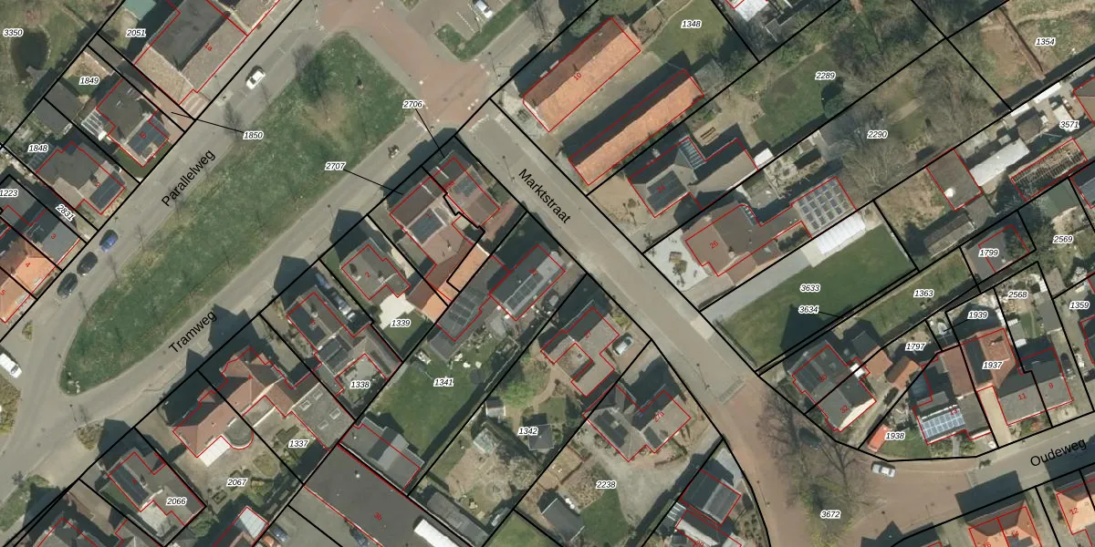 Het perceel waarop Marktstraat 25 staat heeft een oppervlakte van 860 m². Dit is een groot perceel. De perceeloppervlakte wordt geregistreerd door het Kadaster. Gedetailleerde informatie over de maten van dit perceel kunt u vinden in het rapport Kadastrale kaart met maatvoering van Marktstraat 25.