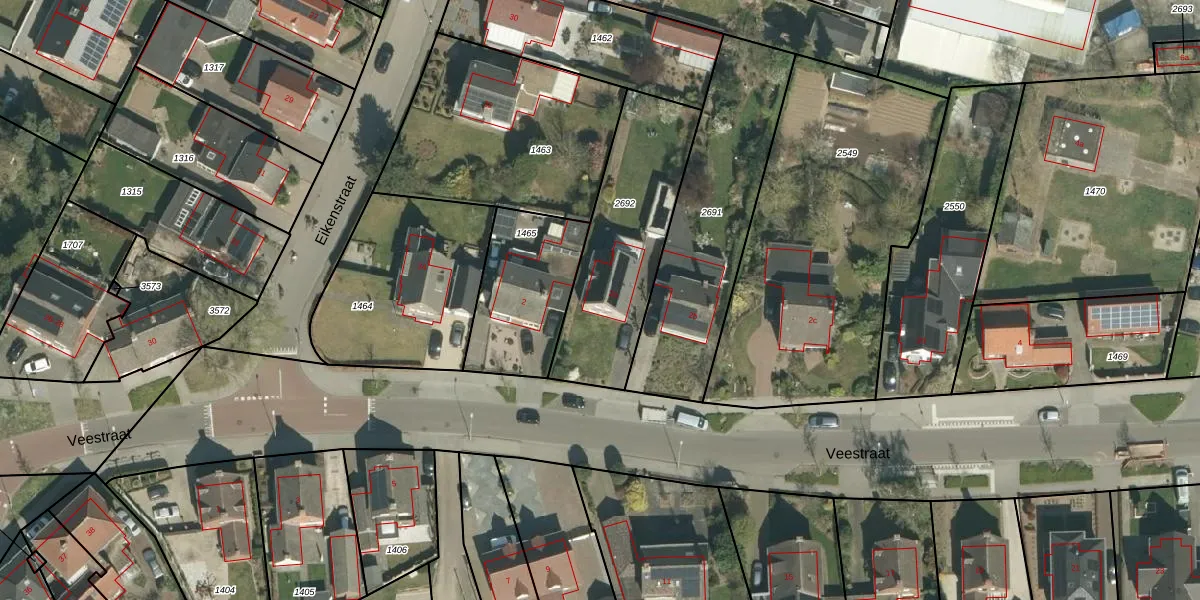 Het perceel waarop Veestraat 2-a staat heeft een oppervlakte van 635 m². Dit is een groot perceel. De perceeloppervlakte wordt geregistreerd door het Kadaster. Gedetailleerde informatie over de maten van dit perceel kunt u vinden in het rapport Kadastrale kaart met maatvoering van Veestraat 2-a.