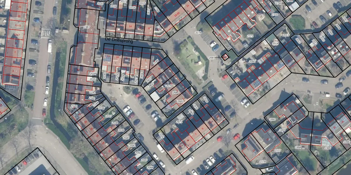 Het perceel waarop De Driesprong 2 staat heeft een oppervlakte van 119 m². Dit is een middelgroot perceel. De perceeloppervlakte wordt geregistreerd door het Kadaster. Gedetailleerde informatie over de maten van dit perceel kunt u vinden in het rapport Kadastrale kaart met maatvoering van De Driesprong 2.