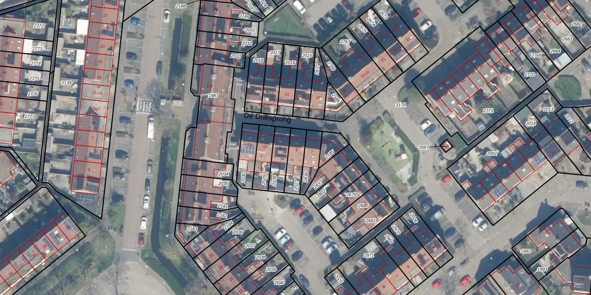 Gebruik de zoekbalk of klik op een perceel voor informatie over de adressen binnen dit perceel.