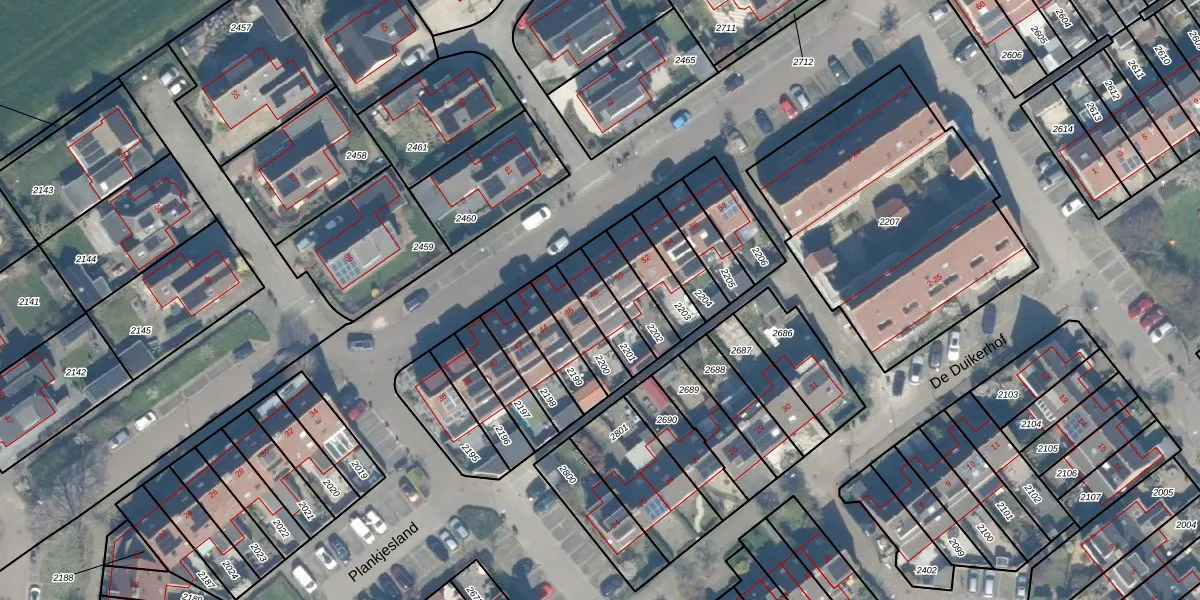 Gebruik de zoekbalk of klik op een perceel voor informatie over de adressen binnen dit perceel.