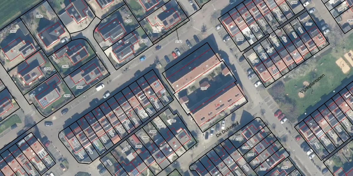 Het adres is gelegen op perceel 2207 in de sectie B en de kadastrale gemeente Linschoten. De kadastrale aanduiding is aldus LST00-B-2207. Het perceel is kleiner dan gemiddeld in Linschoten. Het perceel is 1310 m² groot, terwijl het gemiddelde ligt op 5038,14 m². De grootste perceeloppervlakte in de kadastrale gemeente is 26,7 ha. De kleinste oppervlakte bedraagt 0 m². Er zijn 26 adressen aanwezig op het perceel. In de Basisregistratie Kadaster (BRK) werden de grenzen van het perceel geregistreerd op 23-08-2000.