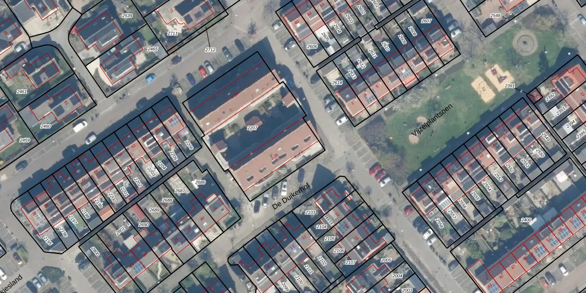 Het perceel waarop De Duikerhof 23 staat heeft een oppervlakte van 1310 m². Dit is een zeer groot perceel. De perceeloppervlakte wordt geregistreerd door het Kadaster. Gedetailleerde informatie over de maten van dit perceel kunt u vinden in het rapport Kadastrale kaart met maatvoering van De Duikerhof 23.