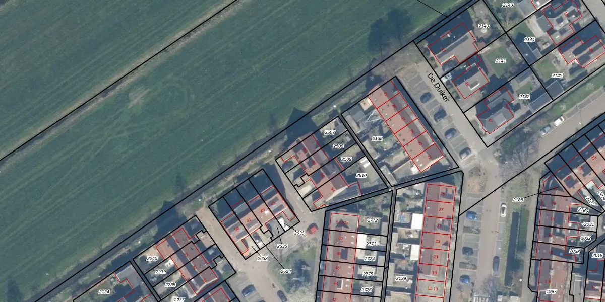 Gebruik de zoekbalk of klik op een perceel voor informatie over de adressen binnen dit perceel.
